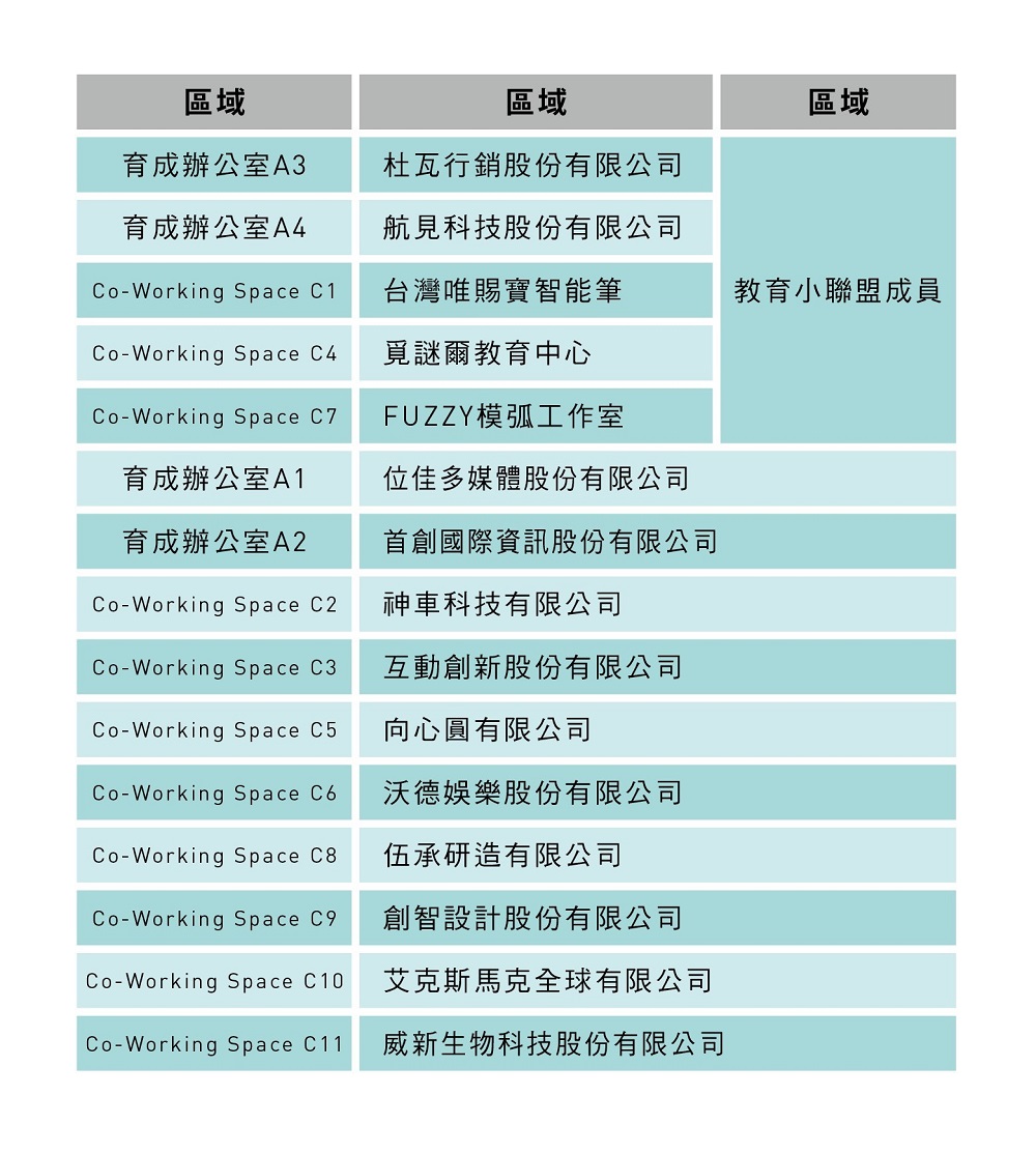 另外,為了提昇創業團隊的研發實力與產業競爭力,青年事務局非常鼓勵進駐成員結盟合作,今年六月便由臺灣唯賜寶智能筆創辦人林熒洲發起「教育小聯盟」,邀請同樣志在推廣科技教育的其他4組優秀團隊加入。對於成功運用物聯網、大數據分析與人工智慧技術,研發出智能筆協助孩童矯正寫字坐姿與握姿的他,發現新創團隊往往都是單打獨鬥模式,如果化零為整採取群體戰術,透過交流技術或分享銷售通路,共同針對十二年國教108課綱的科技領域進行教案與教具研發,那麼將有助於擴張影響力,並且提昇各自產品能見度,尋求本業的長遠發展。